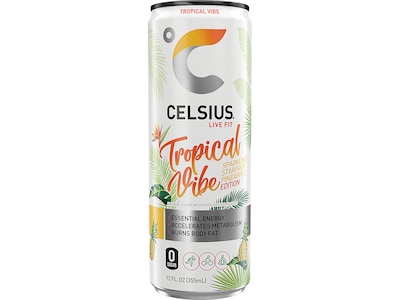 Celsius Sugar-Free Tropical Vibe Sparkling Energy Drink, 12 fl. oz., 12 Cans/Carton (02127)