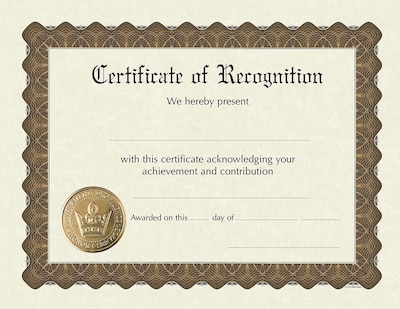 Certificate of Recognition, Foil, 8.5 x 11, 6/Pack (930200)