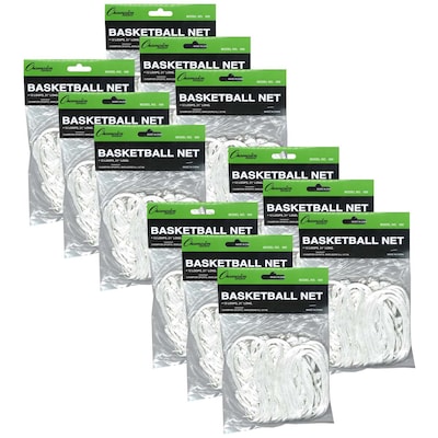 Great for beginners and casual shooting practice in the backyard, this Champion Sports 4 mm Economy Basketball Net fits most standard-sized basketball rims. The classic white basketball net is made with a 4 mm braided nylon that can stand up to regular use with both indoor and outdoor basketball hoops. Sold as a pack of 12 nets.