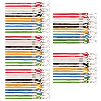Securely fasten your whistle or name badge with the Champion Sports Heavy Duty Nylon Lanyard. Great for keeping your items close and secure, these lanyards feature a metal J-hook for quick and easy attachment. Each pack includes 12 lanyards in assorted colors: black, royal blue, yellow, green, scarlet and white. Sold as 5 packs, 60 lanyards total.