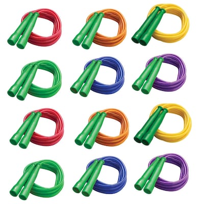 The Champion Sports Licorice Ropes are designed for speed jumping, and feature a molded plastic handle for an easy grip. These Licorice Ropes are incredibly fast, durable, and offer a great value. They are available in a variety of lengths to accommodate all jumpers. Licorice speed. Contoured plastic Green handle. Size: 10' Long, Assorted Colors. Sold as a pack of 12 Jump ropes.