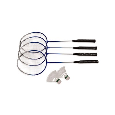 - Deluxe badminton set includes 4 deluxe steel badminton reckets, heavy-duty plastic uprights, 20' net, 2 shuttlecocks, 2 pole anchors and 4 ground stakes for support