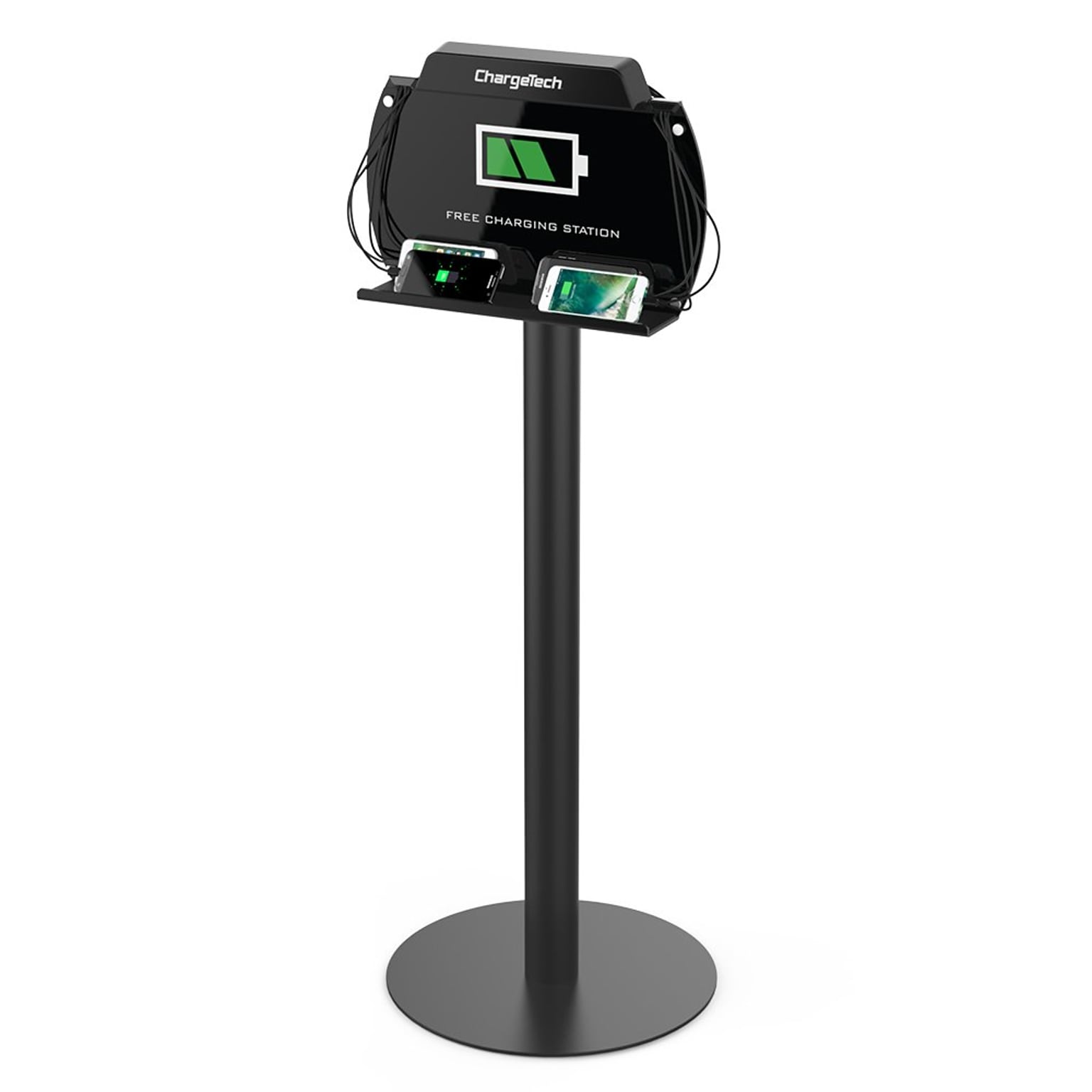 ChargeTech's Power Floor Stand Charging Station is the most reliable solution available as a guest amenity and advertising platform.