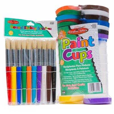 Charles Leonard Creative Arts Paint Cups & Round Stubby Bush Set (CHL73000)