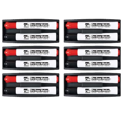 Charles Leonard Dry Erase Magnetic Whiteboard Eraser with 2 Dry Erase Markers, Red/Black, Pack of 6 (CHL74532-6)