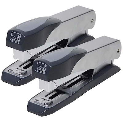 Charles Leonard Executive stapler in silver/gray color has non-skid base and features modern design durable metal construction.