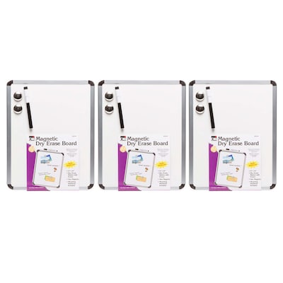 Charles Leonard Magnetic Plastic Dry-Erase Whiteboard, Aluminum Framed, 11" x 14", Pack of 3 (CHL35314-3)