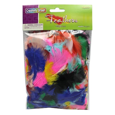 Chenille Kraft® Bright color feathers are ideal for grades pre-school - 12 and is a great for soft jewelry, costumes or all types of craft projects. Feathers add more flair to photo collages, masks, costumes and are non-toxic.