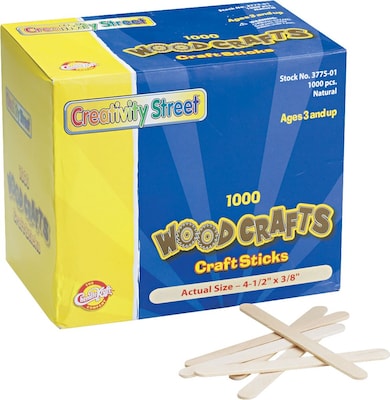 Chenille Kraft Company Natural Wood Craft Sticks, Regular Size, Natural, 4 1/2" x 3/8", 1,000/Bx