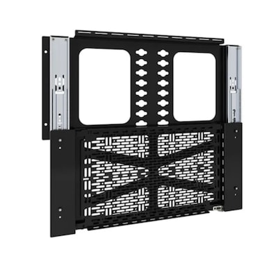 The Proximity Component Storage Slide-Lock Panel facilitates easy, concealed mounting of AV equipment behind displays. To simplify service and accessibility to the equipment simply slide the storage panel out. Install on wall or attach to Fusion mounts left, right, or below the display. The built-in and tool-free Lever Lock plate is easily removed and replaced from the slide-lock panel to service the equipment post-installation without touching the display. This storage panel will hold most small devices for AV installations. The innovative slides on the CSSLP15X10 secure the storage panel and stop it from falling out or down with a push-to-open and push-to-close mechanism. This gives designers, consultants, and installers the flexibility to decide where to best position the storage panel behind the display. The universal small device mounting pattern of the Lever Lock plate offers the versatility to mount devices with cable ties, hook and loop fasteners, or nuts and bolts.