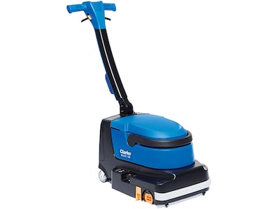 Everyday floor scrubbing and cleanups just got easier and more hygienic. With the compact, battery-powered Clarke MA30 13B micro scrubber, you can quickly clean up small messes or scrub entire areas without messy mops and buckets. In just one pass, the Clarke MA30 13B sweeps, scrubs, and dries, removing dirt and small debris quickly and leaving your floors clean, dry, and more hygienic. To operate the Clarke MA30 13B, simply place your hands on the innovative handle touch points and engage the scrubbing action — the control panel is built right into the handle. To increase water flow for tougher cleaning areas, simply toggle the two solution control settings. And the Clarke MA30 13B scrubber is as easy to put away as it is to use, with a compact footprint and innovative fold-over handle. The result? Fast, effective cleaning plus maximum productivity. So you can quickly finish your floors and get on with your day.