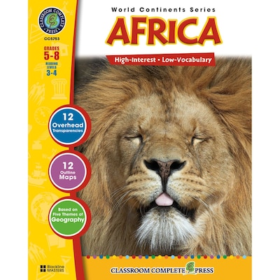 Classroom Complete Press World Continents "Africa" Resource book outlines countries, regions, cities, its geography concepts relative to the rest of the world and is designed for grades 5 - 8.