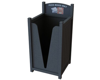 Keep pizza boxes from filling up your trash with this CleanRiver Excel Pizza easy-to-use pizza box recycling bin. The Excel Pizza bin is designed so that the pizza boxes stack on top of one another to avoid bottlenecks in your recycling stream. High-impact graphics tell people exactly what goes in the bin.