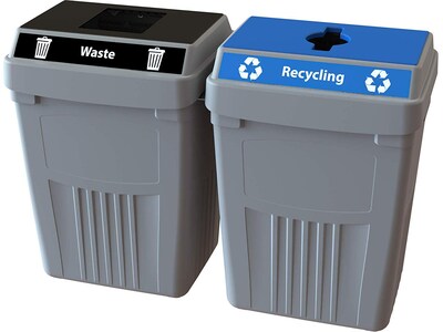 - Comes with color-coded covers: Waste (black) and Recycling (blue)