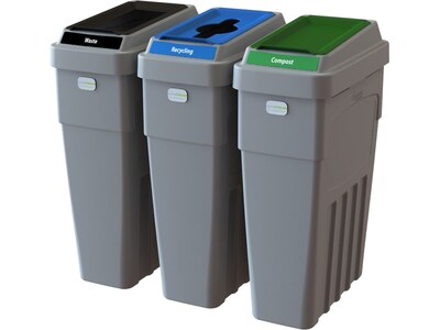 CleanRiver LeanStream Plastic Three-Stream Recycling Station, 69 Gallon, Gray (LS3-002)
