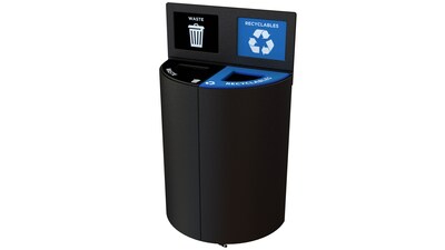 The CleanRiver Moon Unit was designed with style in mind. Smooth and chic, this recycling station is great for boardrooms, executive suites, and front entrances.