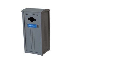 The CleanRiver PD sturdy recycling bin is designed with a curved roof that sheds rain and snow while adding an attractive design element to the bin.