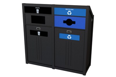 - Comes in black with black Waste and blue Recycling high-visibility stream graphics; made of HDPE recycled plastic