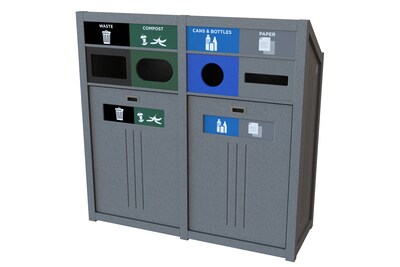 - Comes in gray with black Waste, green Compost, blue Cans & Bottles, and gray Paper high-visibility stream graphics; made of HDPE recycled plastic
