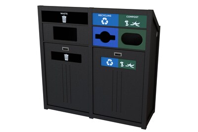 - Comes in black with black Waste, green Compost, and blue Recycling high-visibility stream graphics; made of HDPE recycled plastic