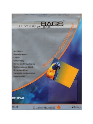 Protect your photos and art with these archival quality, self sealing, see-thru storage bags made of polypropylene. The peel and stick flap securely seals your treasures from dust, dirt and acidic fingerprints into a crystal clear envelope for easy viewing. Sold in packs of 25.