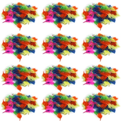Natural turkey feathers featuring non-toxic colors bring life to masks, collages and all your arts and crafts projects. Each exciting color assortments includes 14 grams (1/2 oz.) per bag. Sold as 12 bags of feathers.
