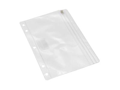 Enjoy the convenience of this carry-anywhere pencil pouch, which features a ziplock closure and clear vinyl body to provide spill-free storage and makes identifying contents easy. For extra functionality, this CLI pencil pouch comes with five factory-punched holes that fit three-ring and five-ring binders.