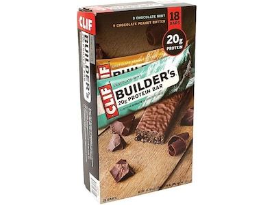 Stock your breakroom with nutritious snacks thanks to these protein bars. Each 18-count box of Clif Bar Builder's bars includes chocolate mint and chocolate peanut butter flavors for wider appeal. Twenty grams of protein per bar makes these ideal for a post-workout treat or a quick lunch substitute when you're too busy for a sit-down meal.