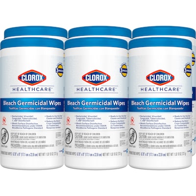 Clorox Healthcare Bleach Germicidal Wipes, 70 Wipes/Container, 6/Carton (CLO35309CT)