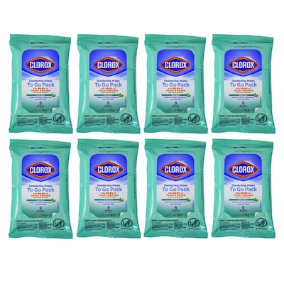 Clorox To Go Fresh Scent Disinfecting Wipes, 9 Wipes/Pack, 8 Packs/Bag, 12 Bags/Carton