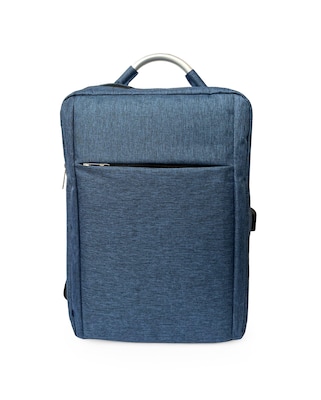 - Single lightweight metal top handle, zipper closure, front zipper pocket. Main interior compartment, polyester lined interior, foam padded interior laptop holder, USB port. Adjustable padded backpack straps.
