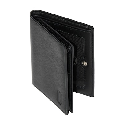 - This black wallet comes in genuine leather.