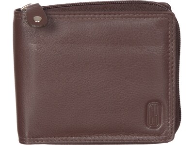 Club Rochelier Winston Leather Zip Billfold Wallet, Brown (CRP3300-Brn)