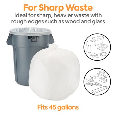 - These 40-45 gal. capacity extra heavy strength bags are ideal for industrial waste, including sharp, heavy, and wet objects