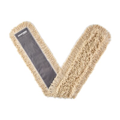 Expand your selection of cleaning supplies with this general-purpose dust mop head. The cotton strands offer high absorbency and effective collection of dust particles and debris, while the reusable design provides easy maintenance and efficiency. A mildew-resistant polyester backing features reinforced stitched ends for greater durability. This Coastwide Professional white cut-end cotton dust mop head is compatible with a wide range of mop frames and handles for a complete floor cleaning solution.
