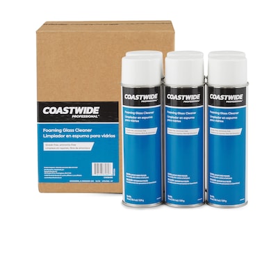 Keep your cleaning supplies cabinet amply stocked with this glass cleaner in a handheld can. The convenient color-coded labeling system facilitates hassle-free identification and storage. With ammonia-free VOC-compliant formulation, this aerosol cleaner preserves the shine of glass surfaces and windows and keeps them squeaky-clean. This Coastwide Professional 19-ounce foaming glass cleaner comes in a handheld can with cap for easy use.