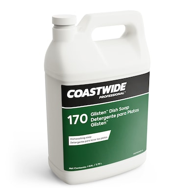 This Coastwide Professional Glisten™ dish detergent is excellent grease remover. Comes in bulk packaging of four 3.78L containers. Removes grease and baked-on food from dishes, pots and pans. Features lemon scented and green color. Not for use in dish-washing machine.