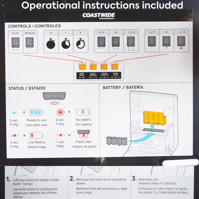- Features push bar to manually dispense paper towels if batteries need to be changed