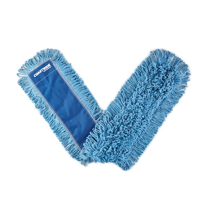 Cover large areas of flooring quickly with this blue dust mop head. The looped ends pick up fine particles, and the cotton construction offers added absorbency for a variety of cleaning tasks. A nonabsorbent polyester backing dries fast and resists mildew for added hygiene. This Coastwide Professional looped-end cotton dust mop head works with Coastwide Professional dust mop handles and frames for hassle-free setup.