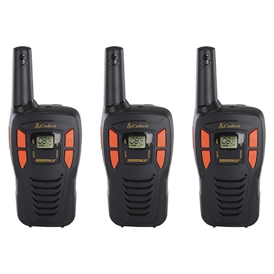 The Cobra ACXT145 is a compact, affordable, and lightweight 2-way radio/walkie talkie set for everyone from the novice to the professional radio enthusiast. This 3-Pack of walkie talkies is ideal for biking, camping, hiking, and any time you want to keep in touch, or if you need to be able to find others. With up to 16-mile range, NOAA weather alerts, roger beep tone, battery/power saver and more, the ACXT145 is ideal for clear communication, inside and outdoors.