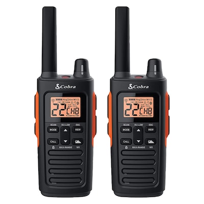 The Cobra RX680 is a pair of waterproof walkie talkies that are ideal for most outdoor conditions. With up to 38-mile range, waterproof (IP54) rating, NOAA weather alerts, built-in LED flashlight, and more, the family-friendly RX680 walkie talkies are ideal for outdoor adventures. Radio-to-radio transmission keeps you connected wherever you go, even when out of cell service range. The built-in NOAA radio receivers let you tune into 10 weather channels, and the available 60 channels provide extended signal range. These Cobra FRS 2-way radios offer crystal clear transmissions so you can stay in touch with friends and family on outdoor adventures.