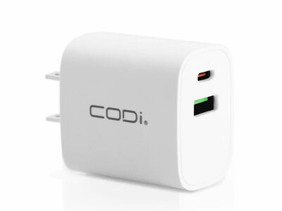 CODi Dual Port 20W Wall Charger/AC Adapter (USB-C, USB-A Outputs) - 20W -USB Type-C - USB Type-A