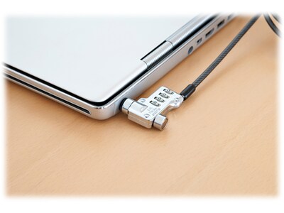- Four-digit combination cable lock provides the convenience of securing desktop and mobile devices with a single lock