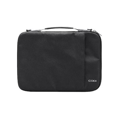 Protect your Chromebook device with the Aegis Chromebook Sleeve from CODi. Our durable and water-resistant cases deliver superior protection. Wear and tear" Not with these. Engineered and designed with durable 1680 Polyester PU PVC, your Chromebook is sure to survive all bumps and scratches. The built-in go-handle makes it easy to pick up and get moving in any environment. The front zipper pocket can store your valuables such as your charging cables, apple pencil, and any other items like keys or cell phones. A slim design allows for comfortability and easy storage in a backpack.