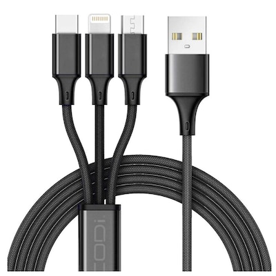 CODi Multi-Charging Braided USB-A Cable with USB-C/Micro USB/Lightning Connectors, Black (A10168)