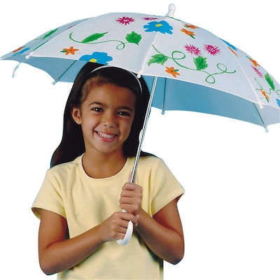 Color-Me™ 16" Umbrella is made up of rip-stop nylon material and is white in color which can be decorated colorfully to give a personalized look, sold as 12 per pack. Color-Me™ 16" Umbrella can be decorated with fabric paint and permanent markers to give a creative style. Umbrella includes a safety runner with non-spring shaft for manual opening and curved plastic handle, sold as 12 per pack.