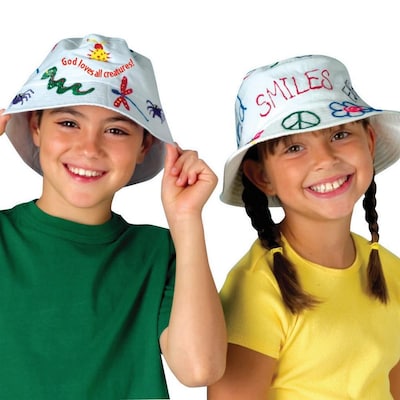 Make outing experiences more fun with the Color-Me Bucket Hats. Meant for kids, these cotton bucket hats can be painted and personlized according to your choice. This pack comes with 12 bucket hats and lets you organize a fun coloring project with kids before you venture out on trips and excursions. These caps can be worn after decorating to protect little hikers from the sun.