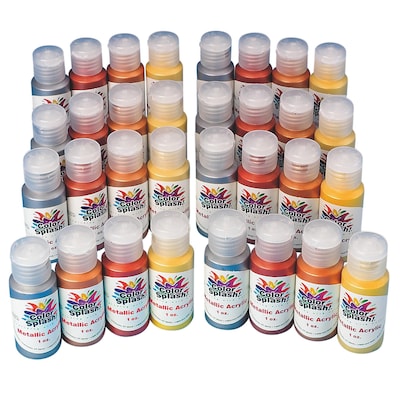 Color Splash® Metallic acrylic paint is perfect for all your craft projects and comes in 1 oz capacity jar, sold as 32 per pack.
