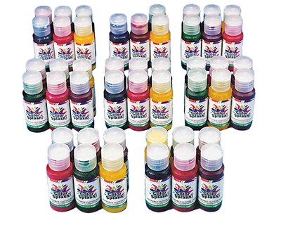 Color Splash® Glitter paint in assorted color comes in 1 oz capacity bottle and offers sparkling results, sold as 48 per pack.