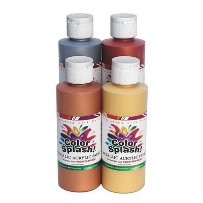 Color Splash® Acrylic paint in assorted color comes in 8 oz capacity bottles and offers metallic finishing, sold as 4 per pack.